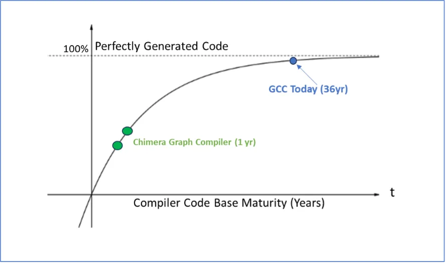 Quadric’s Chimera Graph Compiler (CGC) is based in-part on TVM and has been heavily extended to optimize for the Chimera architecture. CGC is less than a full 1 year old since Beta deliveries to Quadric customers began in late 2022. CGC is therefore very, very early in the compiler maturity curve, as suggested by Figure B.